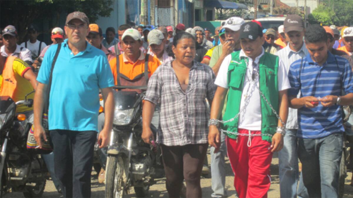 Víctor Galván, presidente de la Federación Comunal de Córdoba, marcha encadenado desde Tierralta, en el alto Sinú, hasta Montería, como estrategia de protesta para exigir mejor atención de los mandatarios locales, seccionales y nacionales para con la lucha que enfrentan sus colegas en pro del beneficio general y para que los grupos armados dejen de asesinarlos.