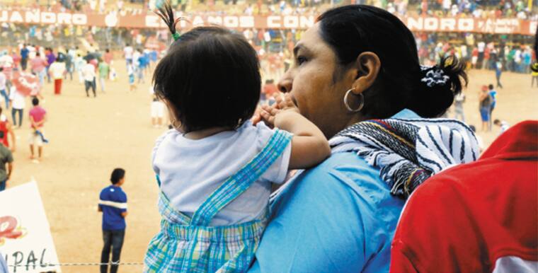 -¿No le parece riesgoso estar con esa niña de brazos en un lugar como este?' - le pregunta el reportero en medio del ruido de la corraleja, donde es imposible mantener un diálogo si no es a los gritos.