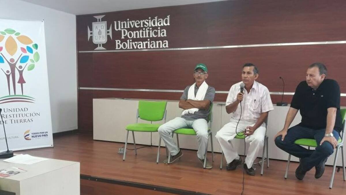 'Ahora que puedo dormir allá en la parcela con tranquilidad y sentir de nuevo el aire puro y la paz del campo, mi familia y yo estamos muy motivados y con más ganas de empezar de nuevo con la ganadería y los cultivos. Estoy muy agradecido con Dios y con el Estado', sostuvo Héctor, en medio de un auditorio con cupo lleno durante un foro de restitución este fin de semana organizado por la Unidad de Restitución de Tierras y la Universidad Pontificia Bolivariana (UPB) Montería, a través de la facultad de Comunicación Social.