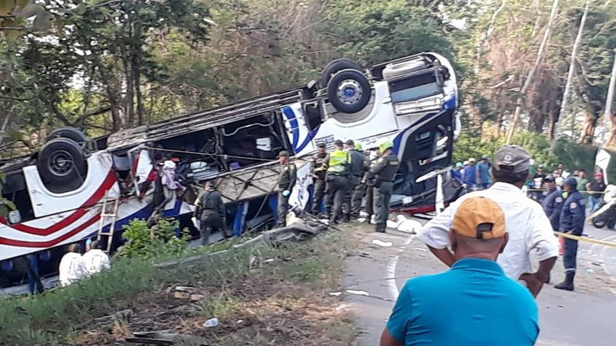 El accidente ocurrió a las 3:15 a. m., de este domingo cuando el automotor, de placas STS-972, cubría la ruta Cartagena-Medellín.