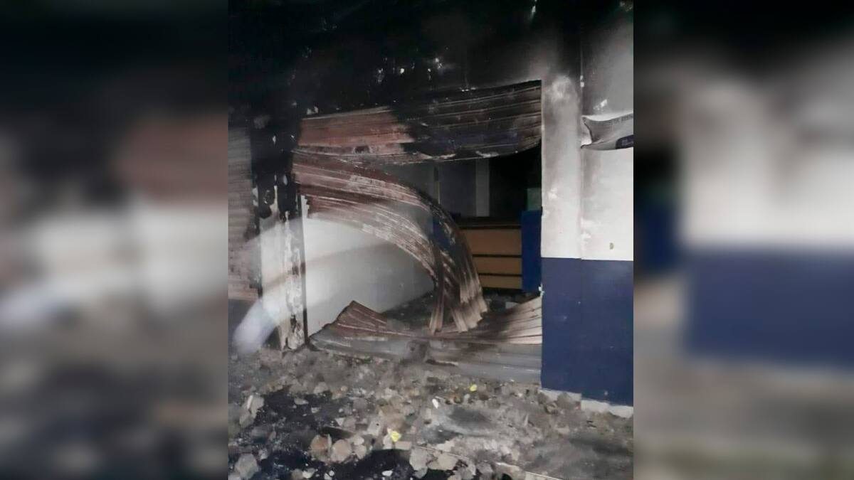 Una turba saqueó y prendió fuego a la sede de Electricaribe en San Bernardo del Viento durante la noche de este lunes.