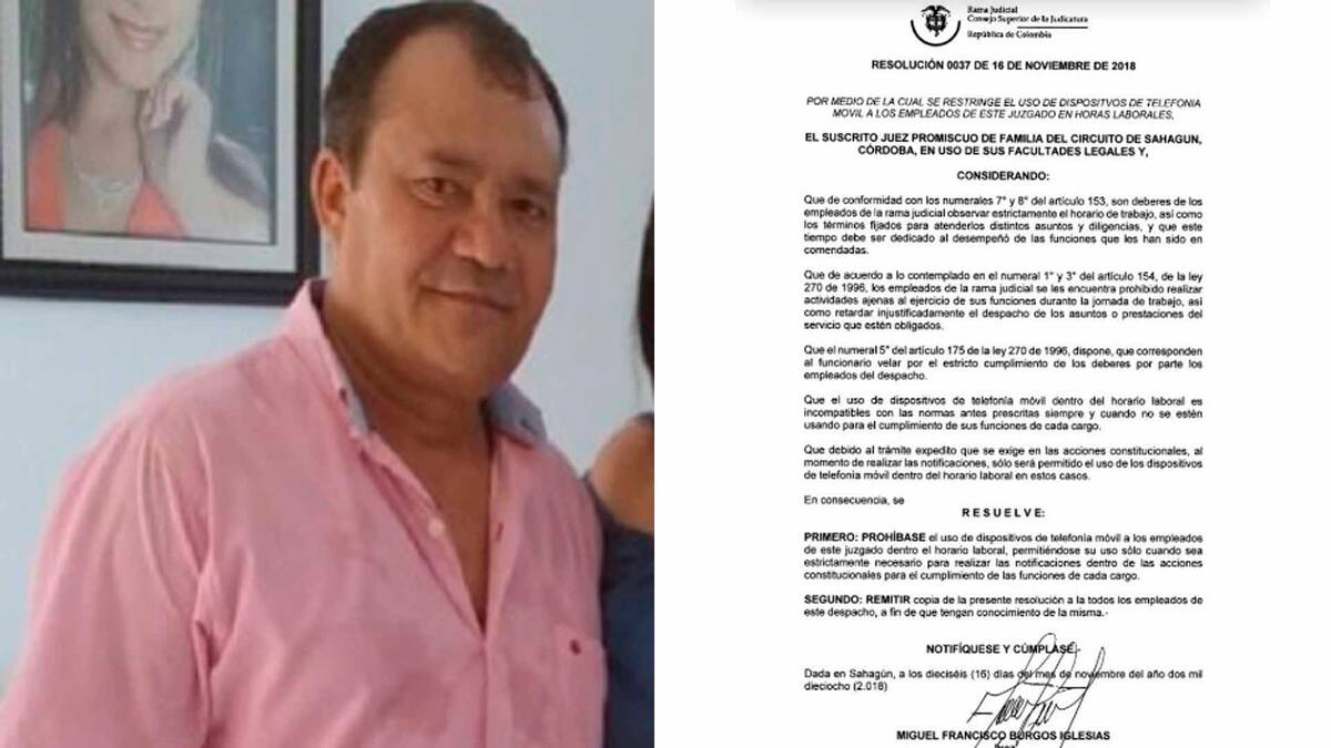 'Prohíbase el uso de telefonía móvil a los empleados de este juzgado dentro del horario laboral, permitiéndose su uso solo cuando sea estrictamente necesario para realizar las notificaciones dentro de las acciones constitucionales para el cumplimiento de las funciones de cada cargo', indica textualmente en la resolución 0037 del 16 de noviembre de 2018, firmada por el mencionado juez.