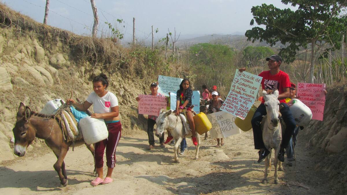 Y qué decir del problema del agua a pesar de que el acuífero de Morroa está en la zona. Damaris Álvarez mostró un recipiente con agua color verde la cual es, según ella, la que están obligadas a consumir porque no les han garantizado un servicio de agua eficiente. Con este problema se ven afectadas unas dos mil personas entre las cuatro veredas. Carlos Urzola Ortega y Rafael Aleán Paternina también reclamaron mejora en las vías de acceso que están llenas de grietas. Sobre sus burros reclamaron más inversión social y que los gobernantes no los tengan rezagados como animales porque merecen vivir en condiciones dignas.
