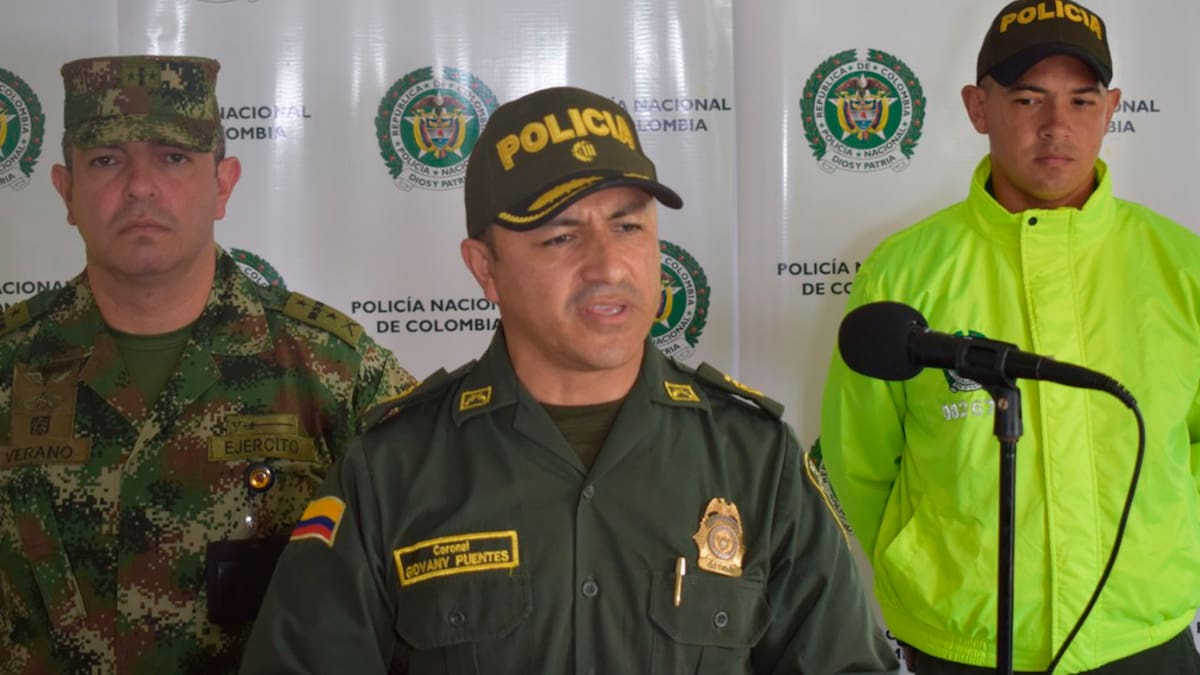 El alto oficial relató que 'los uniformados fueron alertados sobre la ocurrencia del hecho y se desplazaron hasta la zona ubicada a unos 45 kilómetros de distancia del casco urbano, pero al llegar al lugar de los hechos, ya los dos hombres estaban muertos'.