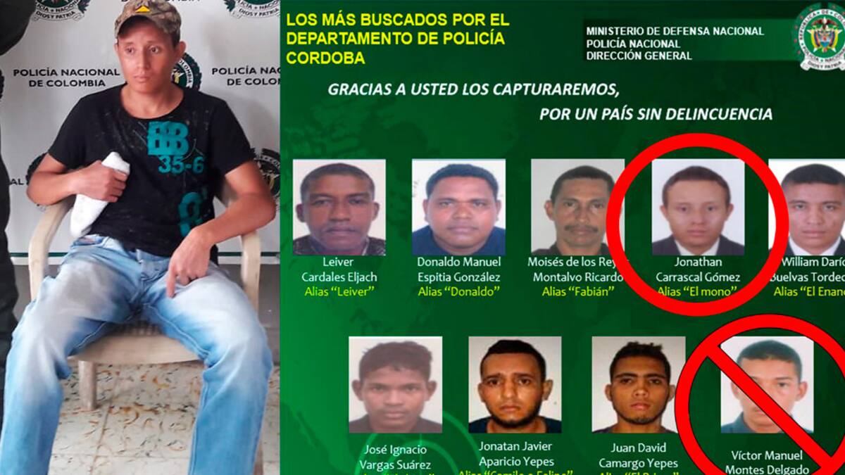 En un puesto de control instalado por unidades de la Policía de Córdoba se logró capturar a un sujeto identificado como Jonathan Carrascal Gómez, de 26 años, conocido en el mundo delincuencial como alias ‘el Mono’, quien era considerado por las autoridades como uno de los hombres más buscados en el departamento.