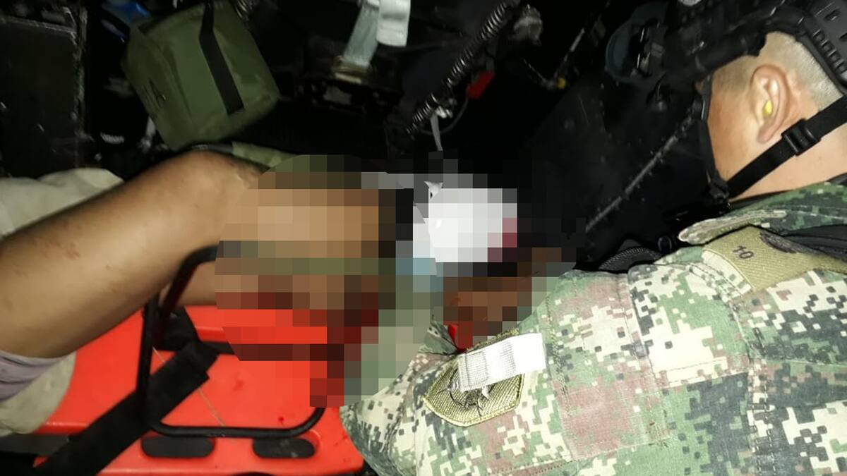Según la información revelada por el coronel Marín Peñalosa, 'el menor herido recibió los primeros auxilios por los enfermeros de combate en una base militar cercana y posteriormente fue evacuado en un helicóptero militar medicalizado y acondicionado para atender esta clase de emergencias'.