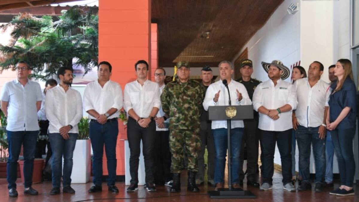Duque expuso que en Colombia el Estado de Derecho se fortalece todos los días. 'No vamos a permitir que ningún grupo armado pretenda intimidarnos, nosotros hoy tenemos todas las capacidades para enfrentar a los criminales que intentan, con actos desesperados, amedrentar poblaciones'.