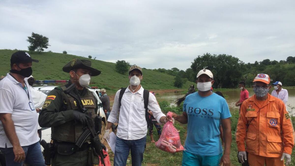 Una comisión integrada por el equipo de Gestión del Riesgo de Desastres Municipal, en articulación con la Secretaría de Infraestructura, los voluntarios de la Defensa Civil, funcionarios de la Corporación Autónoma Regional de los Valles del Sinú y el San Jorge, CVS, y la Policía Metropolitana, llegaron a entregar ayudas humanitarias representadas en colchonetas, kits de aseo y mercados.