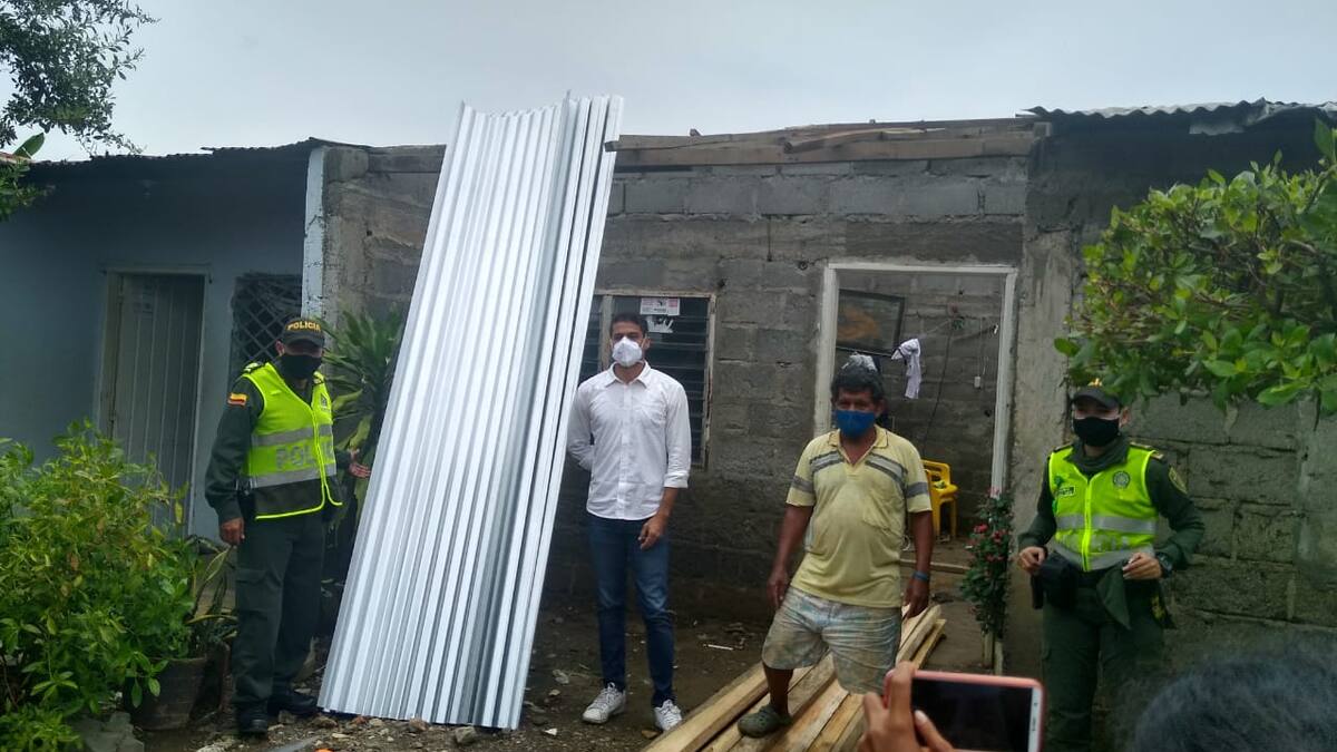 El mandatario continuó diciendo que 'la ayuda brindada por la administración consiste en la entrega de 209 láminas de zinc largas, 24 Eternit número 8 ,130 listones 4x4, 120 baretillas 2 X 2, 20 colchonetas y 3 bultos de cemento, la cual fue entregada con el apoyo logístico de la Policía Metropolitana'.