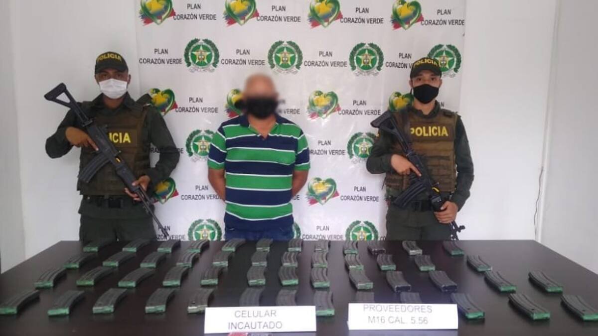 El comandante de la Policía Metropolitana de Montería, Wilson Armel Montenegro, informó que 'a este sujeto se le hallaron 50 proveedores para fusil M16 calibre 5.56, por lo que de inmediato fue capturado'.