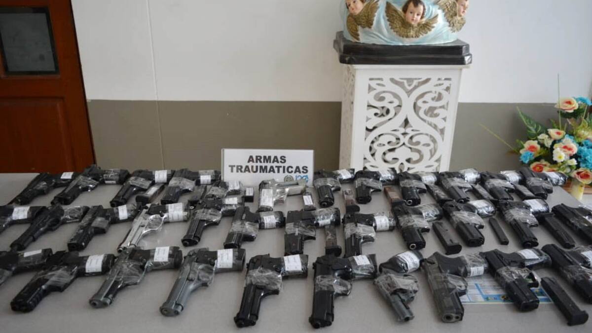 Las autoridades explicaron que las armas traumáticas utilizan una pelota de goma que causa una lesión cutánea dolorosa; mientras que las de fogueo no disparan ningún proyectil, pero generan un sonido similar a un disparo real.