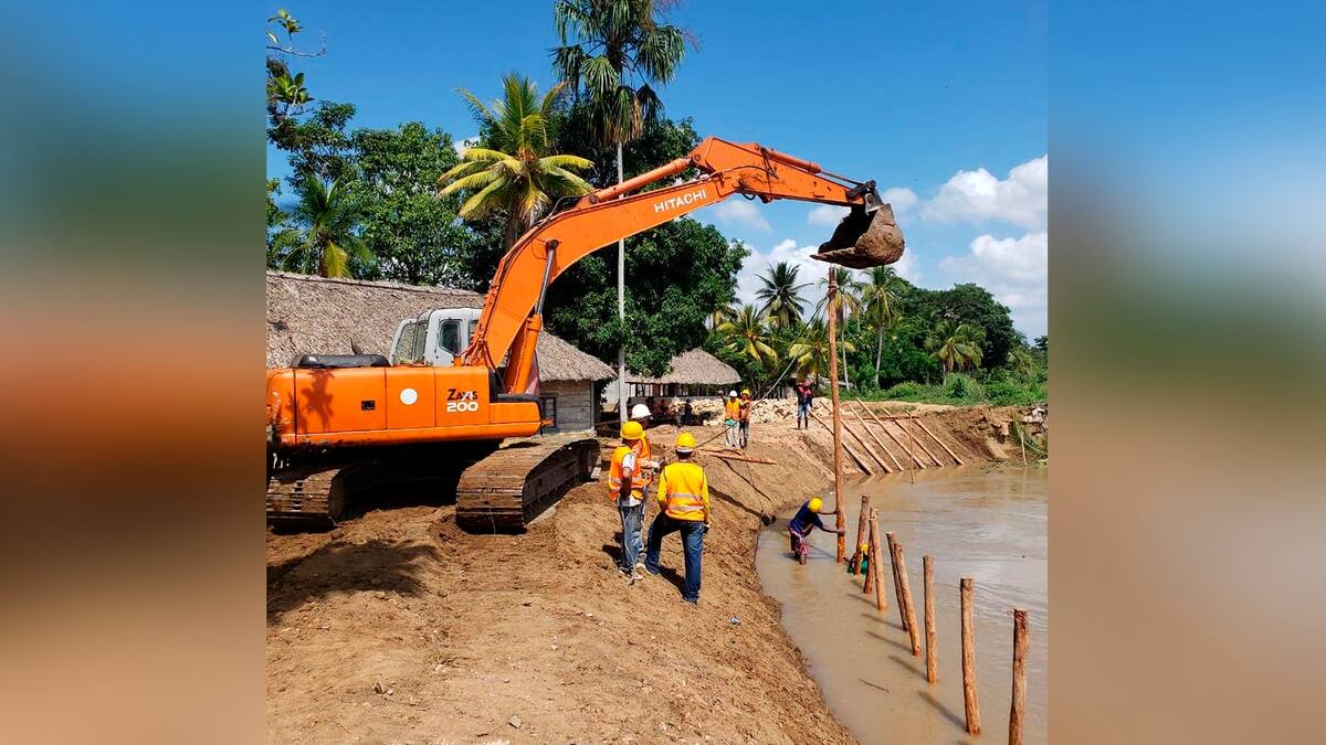 Las maquinarias ejecutan colchas de gaviones, es decir espolones, a la altura del punto conocido como Boca de Cutimba, donde las aguas han erosionado un diámetro de al menos 60 metros, poniendo en riesgo a más de 500 familias, residentes en la zona.