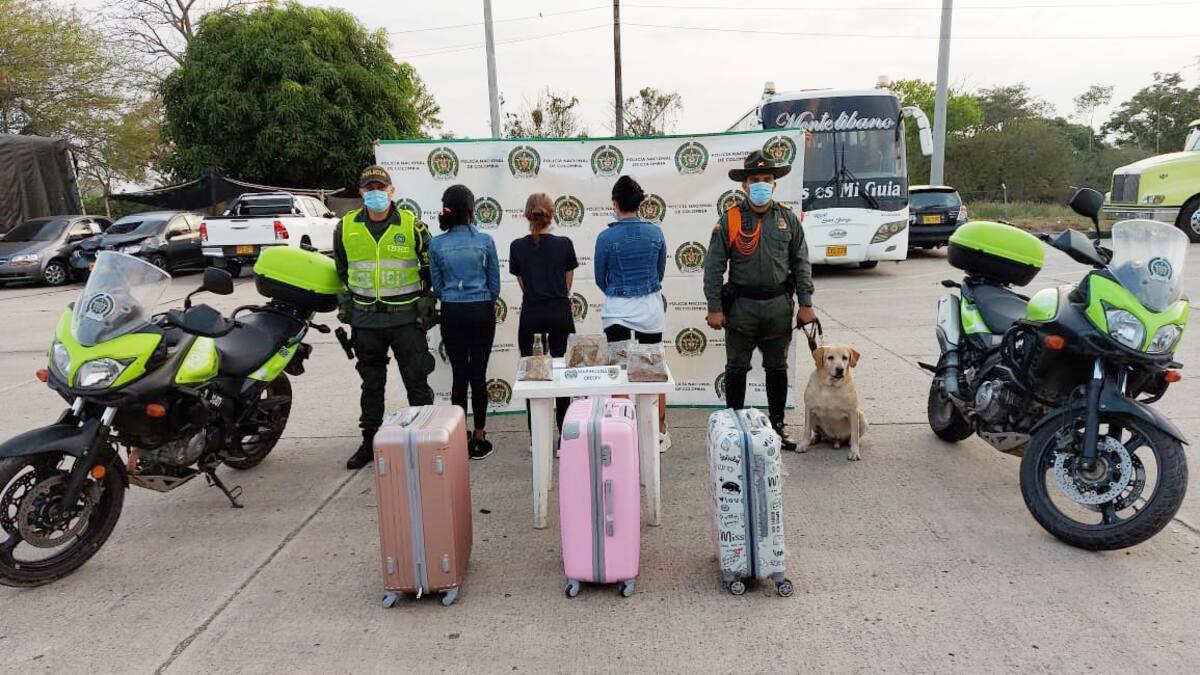 'La sustancia alucinógena se encontraba oculta en el interior de tres maletas grandes que eran transportadas en un vehículo de servicio público, que cubría la ruta Medellín – Montería. En el procedimiento fueron capturadas tres mujeres de 29, 21 y 19 años de edad, identificadas como propietarias del equipaje'.