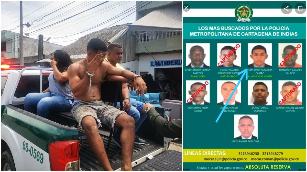 'Al lograr la plena identificación de los dos sujetos de sexo masculino y obtener la información suministrada por la seccional de investigación criminal de Cartagena, se tuvo conocimiento que los dos sujetos presentan orden de captura vigentes por el delito de homicidio siendo uno de estos requerido en el cartel de los más buscados de la Policía Metropolitana de Cartagena, quien responde al nombre de Elías Jesús Cabarcas Castro', dijo.