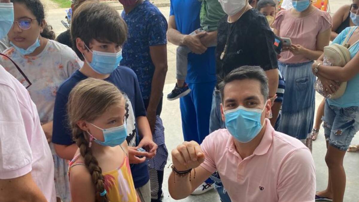 El alcalde Carlos Ordosgoitia realizó un recorrido por el Estadio 18 de Junio donde asisten en su gran mayoría padres de familia llevando a sus hijos entre los 3 y 11 años a aplicar la vacuna contra el Covid-19.