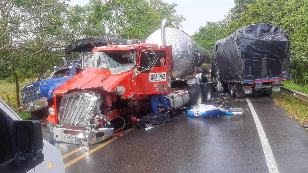 El choque de dos camiones mantuvo obstaculizado el paso por la vía que del municipio de Chinú, Córdoba, conduce a Sampués, en el vecino departamento de Sucre.