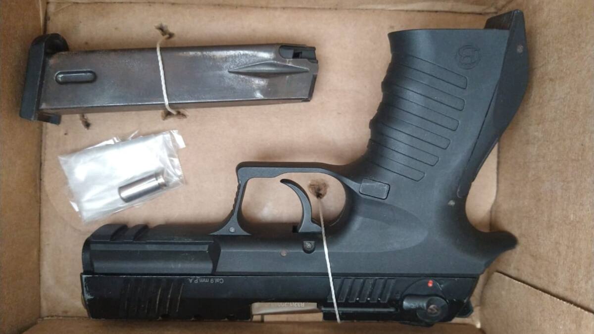También precisó que 'inmediatamente le asisten y llevan a un centro asistencial; al verificar el arma que llevaba consigo, se pudo determinar que se trata de una pistola traumática, asimismo al solicitarle antecedentes se logra establecer que presenta detención domiciliaria'.