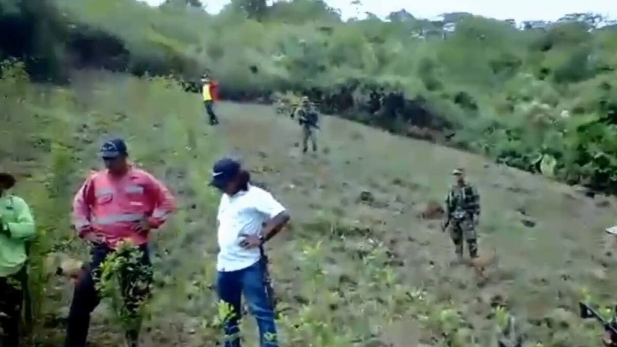 'Aquí estamos miembros de la comunidad de San Antonio, Brazo Izquierdo, Versalles, Alto Cristal, Río Verde, La Santa Lucía, La Cristalina y venimos a rechazar las erradicaciones forzadas porque ya estamos cansados. Nosotros hicimos un arranque voluntario, pero el Gobierno no nos ha cumplido a nosotros', indica una de las mujeres que tomó la vocería durante la discusión, que se produce en medio de un cultivo de hoja de coca.