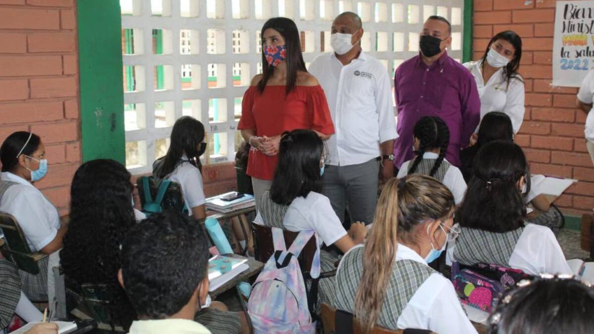 'El motivo de la visita es observar cómo avanza el regreso a clases en esta población. Estamos acompañando el avance de Córdoba en la presencialidad, llevamos un porcentaje superior al 93 por ciento, pero nos faltan unas instituciones por terminar las adecuaciones', sostuvo la alta funcionaria durante su estancia en la Institución Educativa Marceliano Polo, de Cereté.