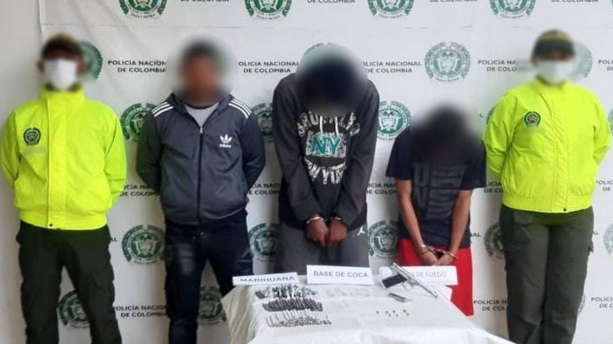 En el operativo se les incautó un arma de fuego tipo pistola calibre 22 milímetros, con siete cartuchos para la misma y un proveedor. De igual manera, 172 gramos de estupefacientes distribuidos en 151 de marihuana; y 21, de bazuco; listos para ser comercializados en pequeñas cantidades.