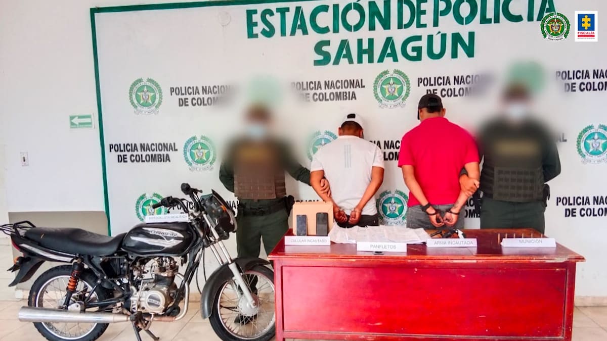'En uno de los casos Miguel Enrique Polo Castillo y Edward Suárez Benítez fueron enviados a prisión por el delito de fabricación, tráfico y porte de armas de fuego, accesorios, partes o municiones y amenazas. Según pudo establecer el ente investigador los dos indiciados, quienes no aceptaron el cargo que les imputó la Fiscalía, presuntamente fueron sorprendidos el 5 de mayo en curso en vía pública de Sahagún, cuando portaban un arma de fuego tipo revólver calibre 38 con 6 cartuchos sin percutir y panfletos alusivos a las Autodefensas Gaitanistas de Colombia', indicó.