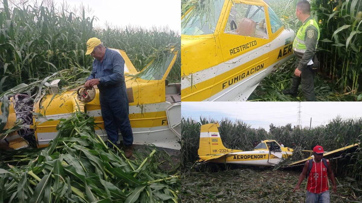 Con relación a la avioneta adscrita a la empresa de fumigación Aeropenor, se supo que es de matrícula HK-2324, y que por la pericia del piloto, logró aterrizar entre un cultivo de maíz en las parcelas San Antonio N° 1.