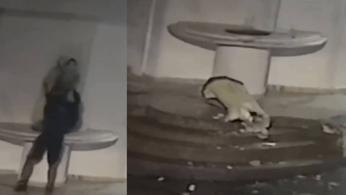 En las imágenes se puede ver al vándalo, que utiliza un trapo para cubrirse la cabeza, mientras que con una piedra arremete contra la imagen en repetidas ocasiones.