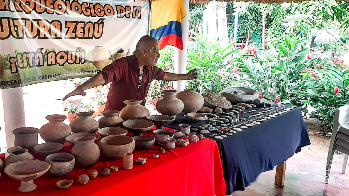 Sobre tablas, mesas, muebles improvisados, encima de bloques apilados o en cualquier repisa que le permita tener unos cuantos centímetros de altura, reposan los recipientes que una vez pertenecieron a los miembros de la cultura Zenú, y que desde hace unas tres décadas son conservados por Franklin Pla Elías, ‘el custodio de la memoria Zenú’.