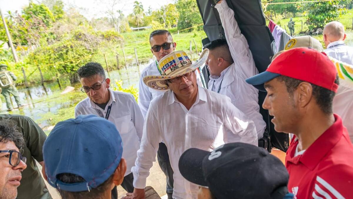 Tras hacer un sobrevuelo por La Mojana, región que se encuentra inundada desde agosto del año pasado por el rompimiento del jarillón en el sector de Cara ’e Gato, en San Jacinto del Cauca, Bolívar, el presidente de Colombia, Gustavo Petro, sostuvo un diálogo en su natal Ciénaga de Oro, Córdoba, con mandatarios locales y líderes de la comunidad para conocer las problemáticas que ha emergencia actual.