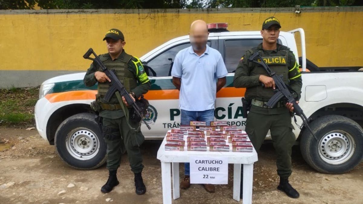 Un hombre de 40 años fue capturado por unidades de la Policía de Córdoba luego de haber sido sorprendido cuando transportaba 2.500 cartuchos calibre 22 milímetros, por la vía que del municipio de Los Córdoba conduce a Montería.