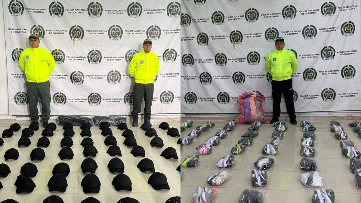 Este viernes 10 de marzo, el comandante de la Policía, coronel Gabriel García Arrieta, informó que en total se decomisaron 150 pares de tenis y 300 gorras de diferentes marcas.