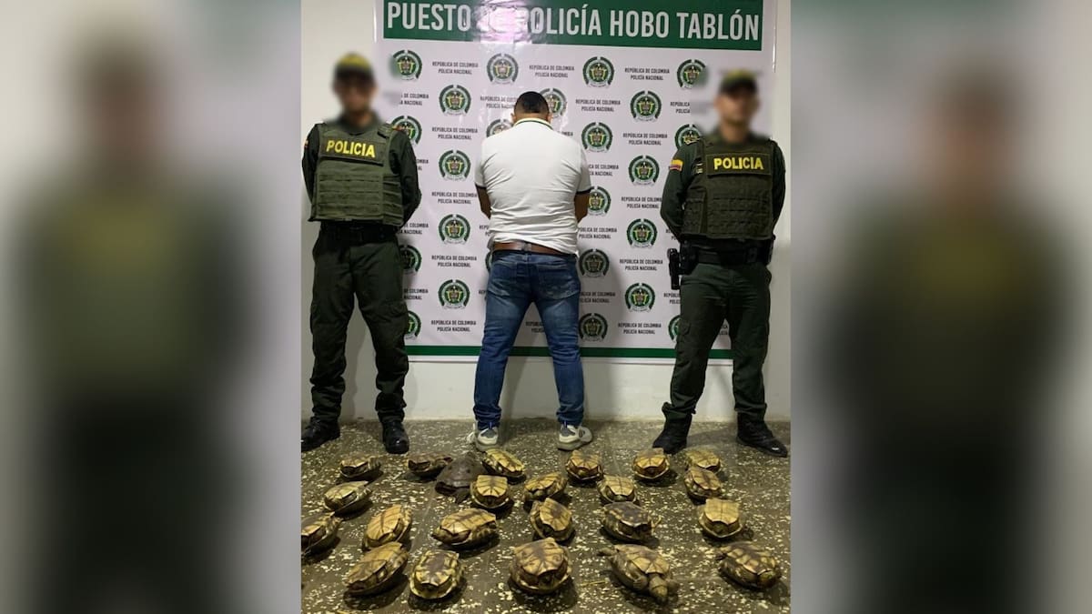 Agregó que 'los sujetos, de 24 y 32 años de edad, fueron sorprendidos por los uniformados transportando en costales 31 hicoteas, trachemys callirostris, las cuales pretendían comercializar. Fueron dejados junto con los especímenes incautados, a disposición de la Fiscalía General de la Nación, ante la cual tendrán que responder por el delito que se les acusa'.
