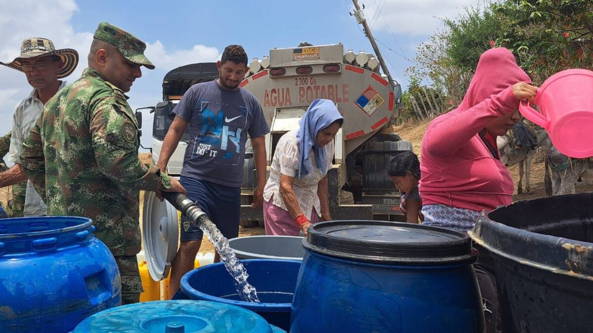 Agregó que 'por esta razón, los soldados trabajan de manera permanente para apoyar con suministro de agua potable a las poblaciones más vulnerables de la región'.