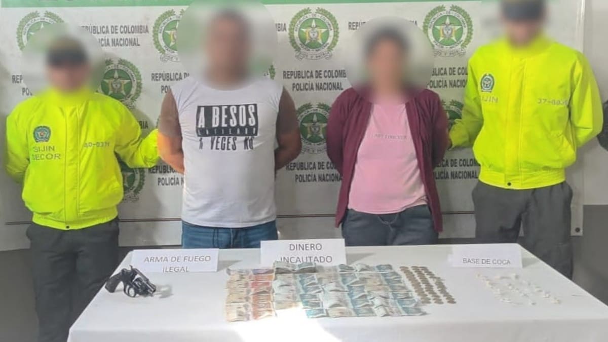 En esta última población, concretamente en el corregimiento El Contento, vereda Costa Rica, fue donde se produjo la aprehensión de un hombre y una mujer a quienes en su domicilio les hallaron un revólver calibre 38 mm con munición, base de coca y dinero en efectivo producto, al parecer, de la actividad ilícita.