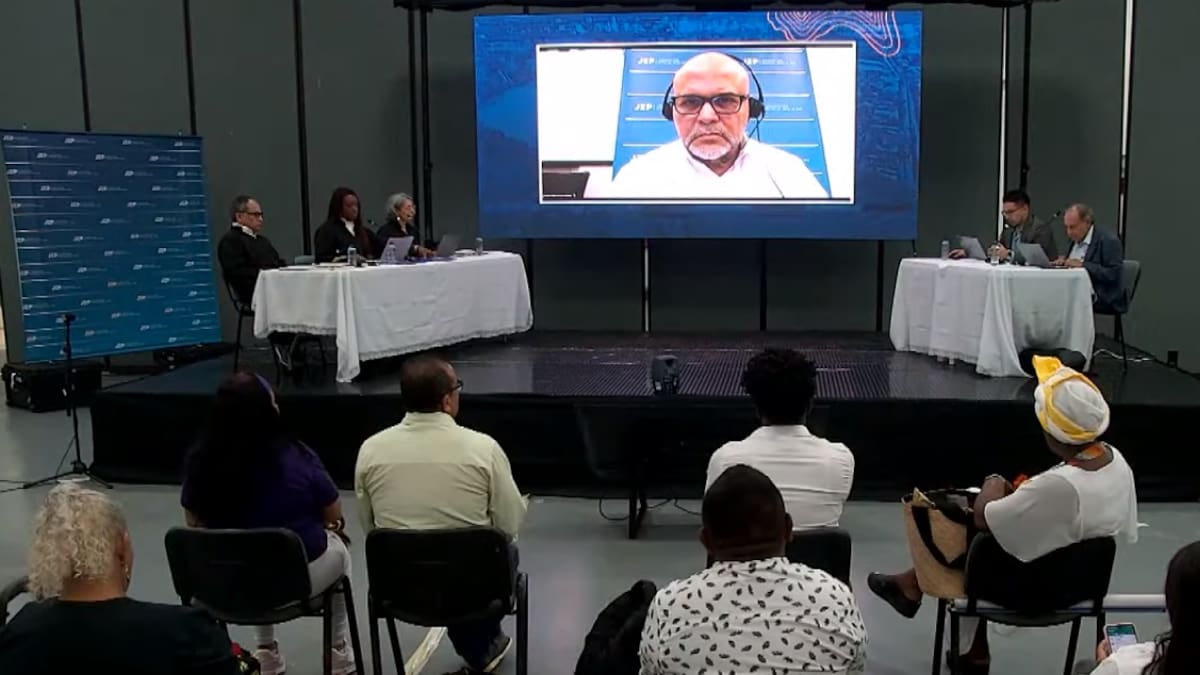 La Audiencia Única de Aporte se realiza con la presencia de las víctimas en el Centro de Convenciones de Montería y con la participación virtual del exjefe paramilitar Salvatore Mancuso, quien se unión mediante una transmisión desde el Centro de Detención de Migrantes en el estado de Georgia, Estados Unidos, donde permanece recluido.