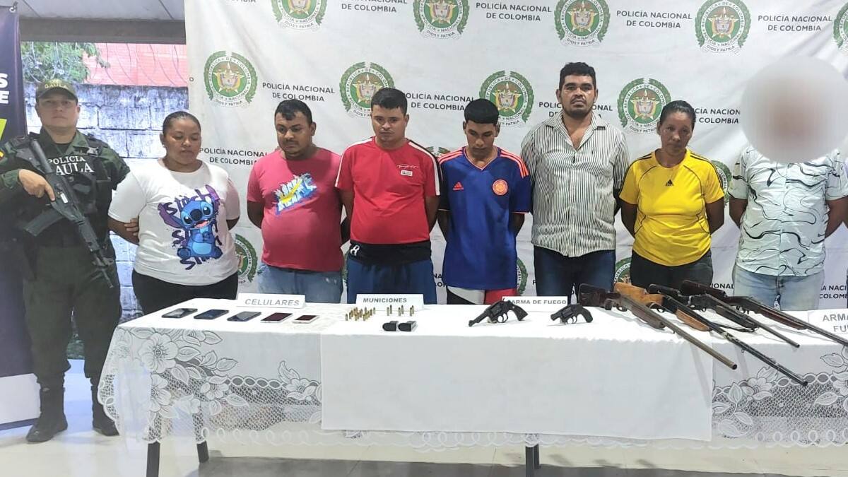 Entre los capturados están alias ‘Cristian’, cabecilla financiero de zona de este grupo; alias ‘Joaquín’ y alias ‘Nataly’, cobradores de extorsiones; Rubén Darío Ortega Ayala, Domingo Carmelo Hurtado Negrete, Edinson Francisco Paternina Pérez, Yorlidis Isabel Luna Fernández y Álvaro Javier Rico Morelo, a quienes al momento de las aprehensiones les hallaron dos armas de fuego con sus respectivas municiones.