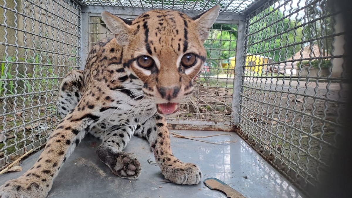 Un ciudadano de 57 años alertó a las autoridades sobre la presencia de un Tigrillo, leopardus tigrinus, que se encontraba herido tras ser atropellado por un automóvil.