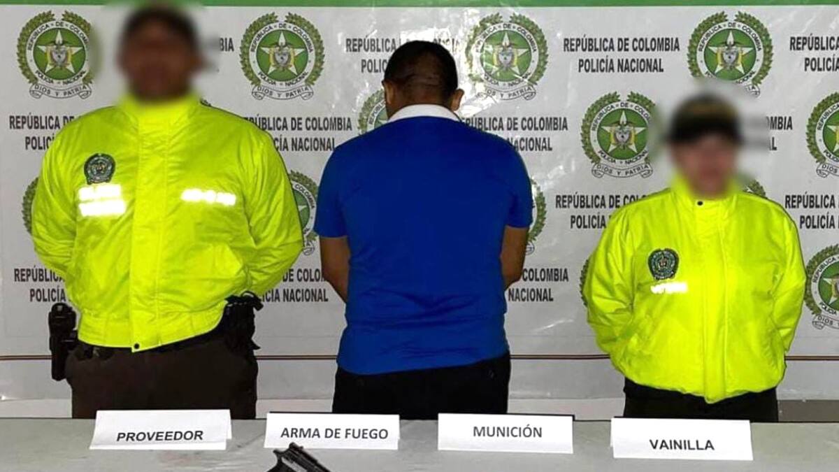 La captura se produjo en desarrollo de una diligencia de allanamiento y registro efectuada en un inmueble de la zona rural. Allí además del ciudadano de 34 años hallaron una pistola calibre 9 mm, un proveedor de color negro, cuatro cartuchos calibre 9 mm y una vainilla cilíndrica de color dorado.