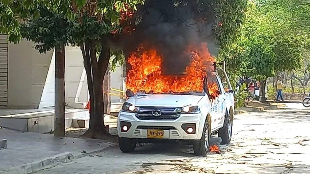 En esta oportunidad dos hombres que se movilizaban en una motocicleta le prendieron fuego a una camioneta adscrita al servicio de Afinia que estaba parqueada en las afueras de una casa del barrio Miramar en el municipio de Sahagún.