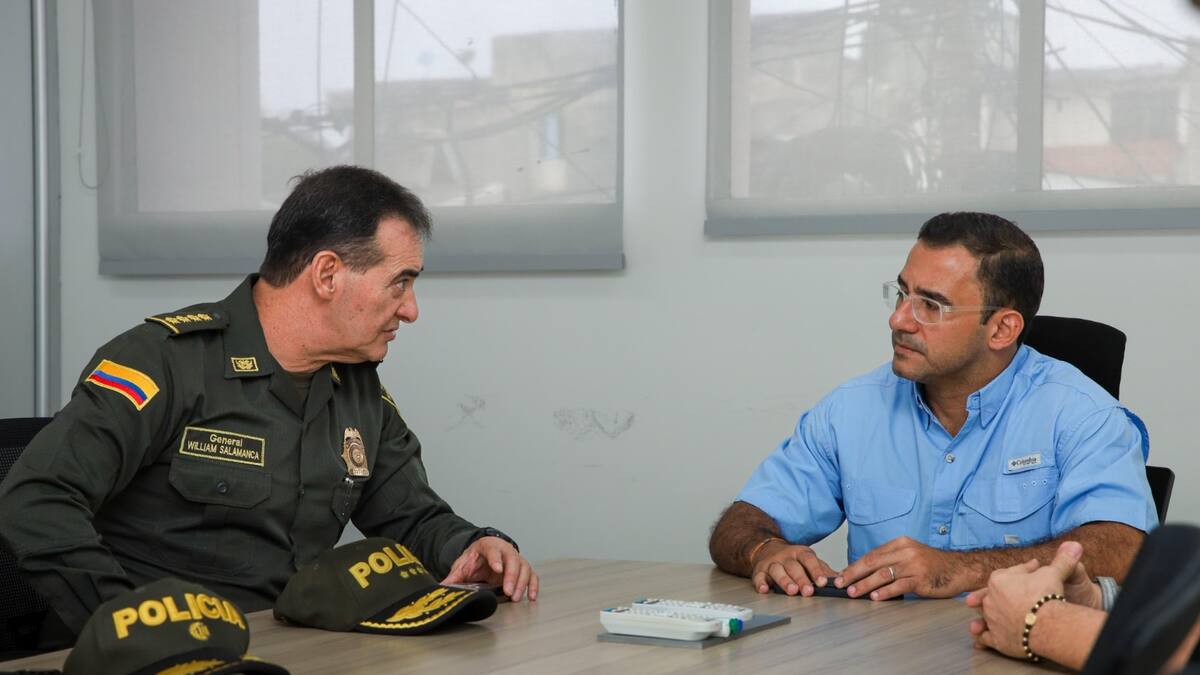 El director de la Policía Nacional, general William René Salamanca Ramírez, aprovechó su presencia en la ciudad de Montería en el marco de las jornadas del Gobierno con el Pueblo del presidente Gustavo Petro Urrego, para reunirse con el alcalde de la capital de Córdoba, Hugo Kerguelén García, y tomar acciones en pro de una mejor seguridad.