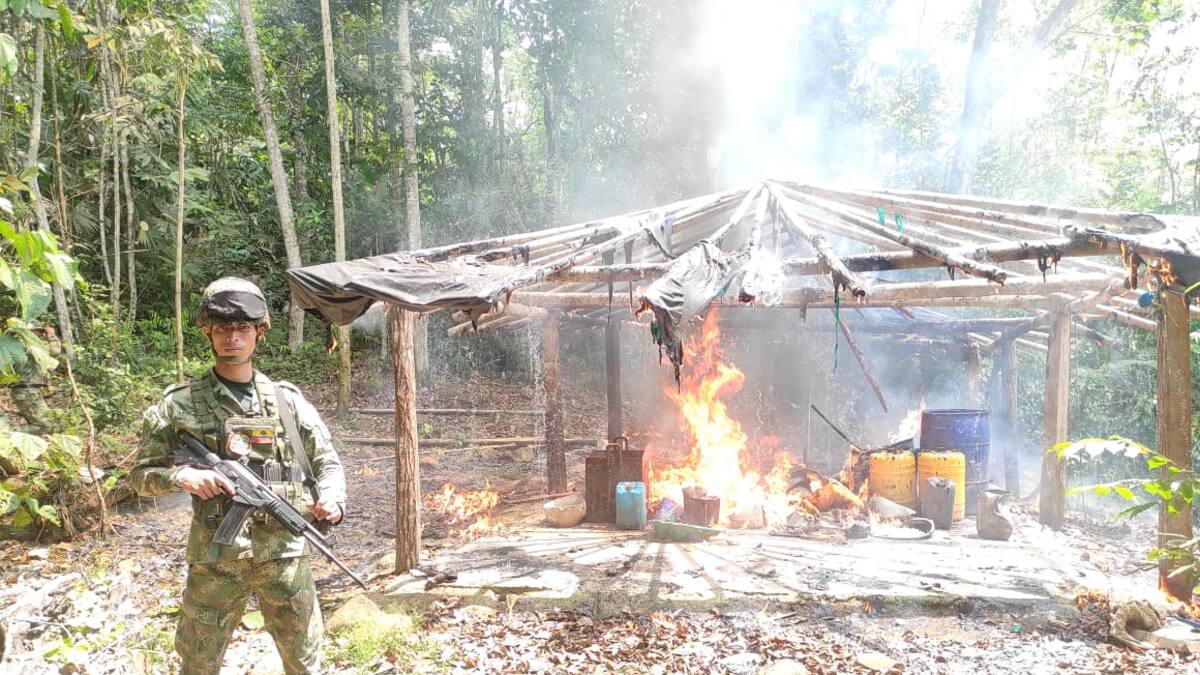 Las labores investigativas adelantadas por la Décima Primera Brigada del Ejército Nacional permitieron la ubicación y posterior destrucción, de manera controlada, de dos laboratorios para el procesamiento de pasta base de coca.