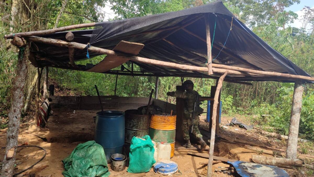Las tres estructuras de madera que fueron destruidas contenían 400 galones de pasta base de coca en proceso, 36 galones de gasolina, 24 canecas, 50 kilogramos de cal, 3 prensas artesanales y amoniaco, entre otros insumos líquidos y sólidos para la fabricación del alcaloide.