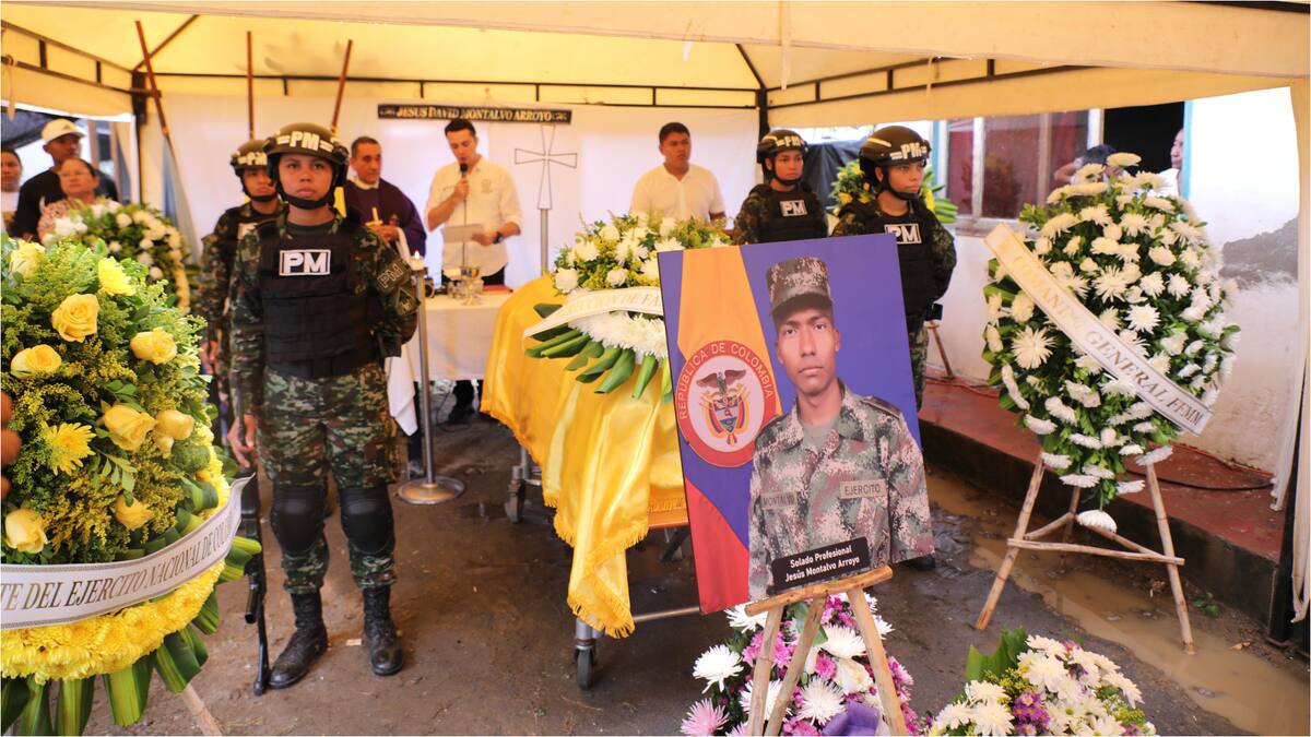 El Ejército Nacional y la Gobernación de Córdoba le rindieron honores póstumos este jueves 9 de mayo al soldado profesional Jesús David Montalvo, quien falleció el pasado lunes 29 de abril mientras cumplía con su labor en el sur de Bolívar.