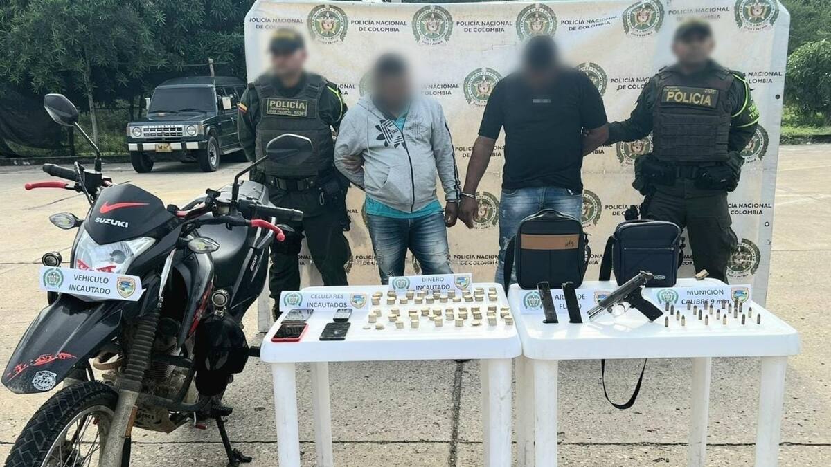 En el puesto de control situado a la altura del municipio de Planeta Rica los uniformados se incautaron de las armas, de 21 cartuchos calibre 9 milímetros, de 4 celulares y más de 300 mil pesos en efectivo que estaban en poder de dos hombres que se movilizaban en una motocicleta Suzuki de alto cilindraje.