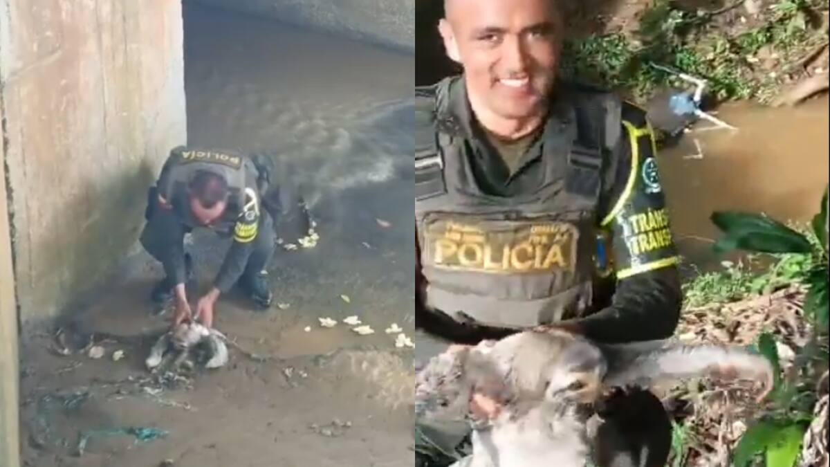 Como un acto heroico calificaron el gesto de un uniformado de la Policía que salvó a un oso perezoso en Córdoba que estaba a punto de morir ahogado en un arroyo.