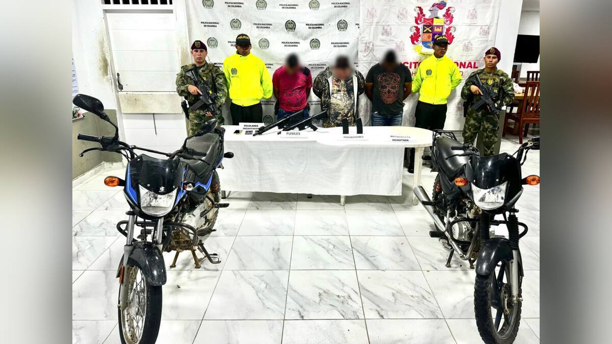Este golpe al Clan del Golfo fue posible gracias a la información oportuna suministrada por la comunidad, lo que permitió interceptar dos motocicletas en las que se movilizaban los antes mencionados que llevaban en un bolso los dos fusiles de asalto semiautomáticos modelo AM-15 de fabricación estadunidense y avaluados en más de 30 millones de pesos.