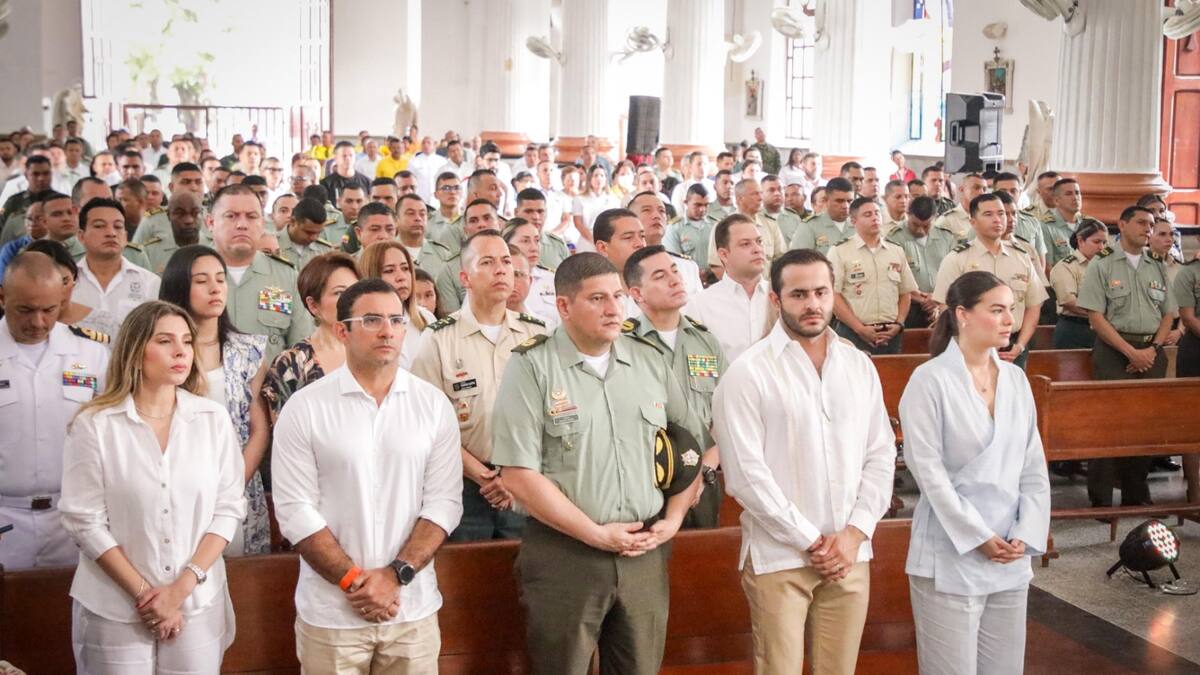 La ceremonia religiosa por los 214 años del Grito de Independencia, la presidió el obispo de la Diócesis de Montería, monseñor Ramón Alberto Rolón Güepsa, y a ella concurrieron el gobernador de Córdoba, Erasmo Zuleta Bechara y la gestora social, Valeria Vega; quienes estuvieron a cargo de realizar las ofrendas, además del alcalde de Montería, Hugo Kerguelén García, y los comandantes del Ejército, Infantería de Marina y del Departamento de Policía Córdoba y de la Policía Metropolitana de Montería.