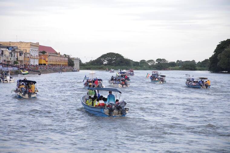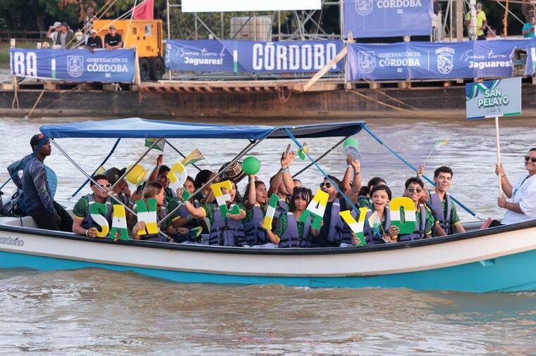 La tarima fue instalada sobre el río y frente a ella y a los espectadores que llenaron el malecón de la bella y señorial Lorica desfilaron, en embarcaciones, las delegaciones de los 30 municipios que participarán de las justas deportivas en 49 disciplinas a partir de este miércoles 4 de septiembre.