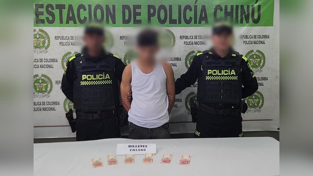 Al hombre, que será procesado por el delito de falsificación por la Fiscalía 22 Seccional de Chinú, le hallaron en su poder 100 mil pesos en billetes de 10 y 20 mil pesos, respectivamente, y que tenían el serial repetido.