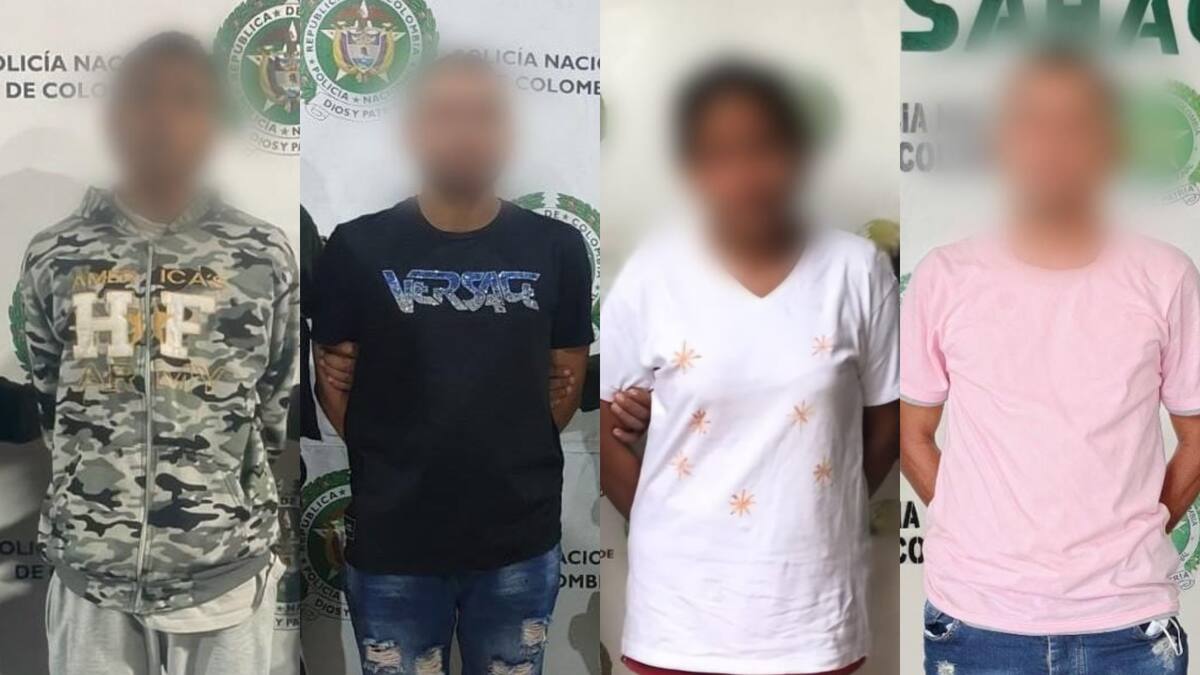 Miembros del Gaula con apoyo de la Seccional de Inteligencia Policial (Sipol), y articulados con la Fiscalía General de la Nación, materializaron las capturas de los alias ‘CD’, ‘Wicho’, ‘Elías’ y ‘La negra’, requeridos por jueces de la República para responder por los delitos de concierto para delinquir agravado, extorsión agravada y homicidio.